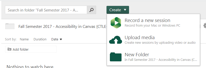 After you click Panopto, you will have a folder on the system that corresponds to your course: