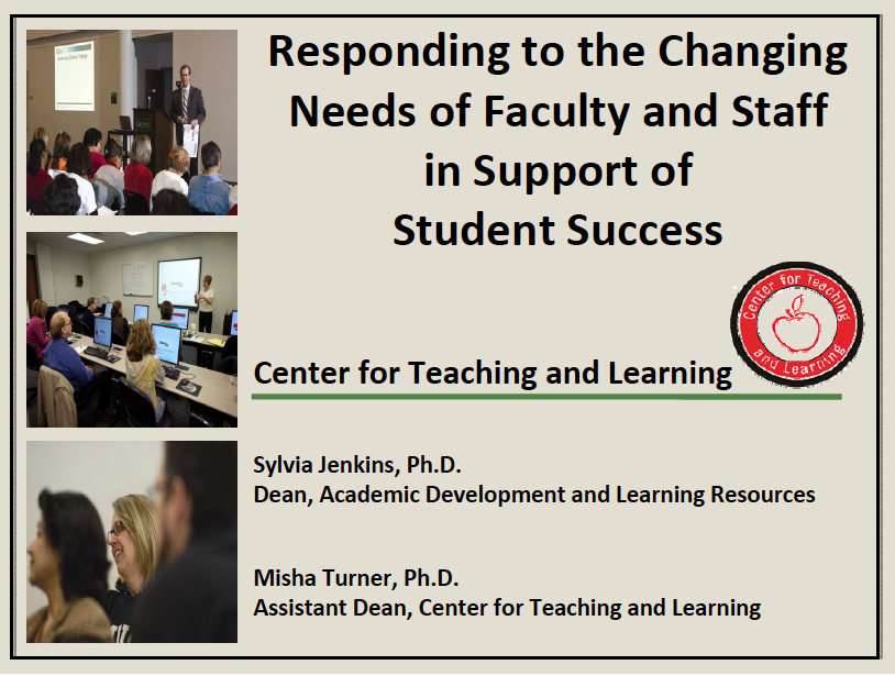 Responding to the Changing Needs of Faculty and Staff in Support of Student Success Sylvia Jenkins, Ph.D. & Misha Turner, Ph.D. League for Innovation in the Community College, Innovations 2010 March 28-31, 2010 – Baltimore, MD |